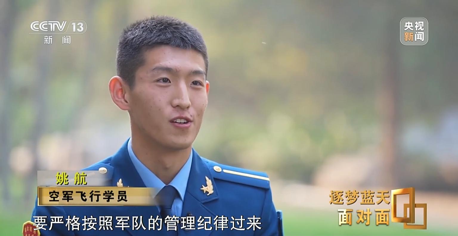 姚航:我最感受深刻的一个点,就是空军的宣传片,看到一个战机在夜里加力起飞,看到它那个尾焰,从飞机的尾喷管喷射出去,在夜空中特别明亮,就跟一盏明灯一样。觉得他们每天时刻都在准备着战斗,每天都在刻苦训练,保护的就是我们黑夜中的宁静,非常感动,就想既然自己可以有这个条件去成为飞行员,那就应该去试一试。